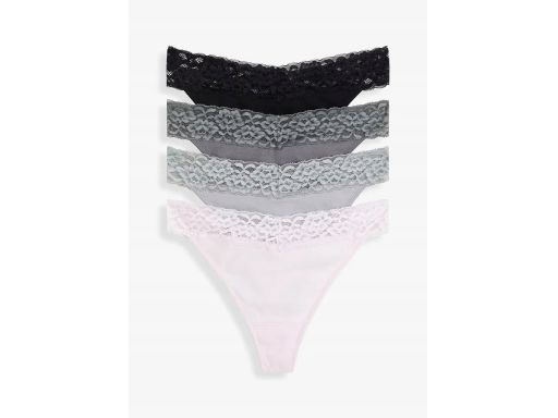 B.P.C 4-pak stringi bawełniane z koronką ^52/54