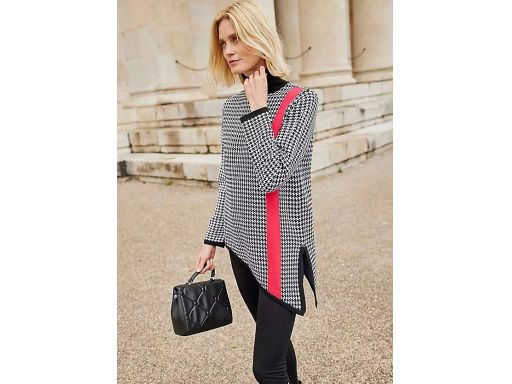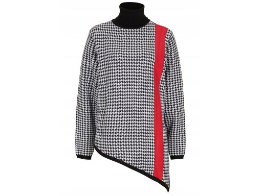 B.P.C asymetryczny sweter w pepitkę z czerwonym paskiem ^40/42