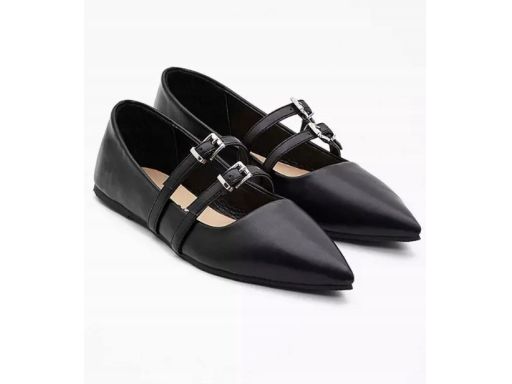 B.P.C baleriny czarne z eko skóry z paskami na klamerki 40.