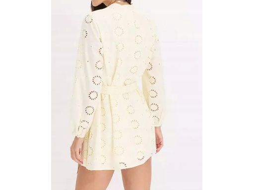 B.P.C bawełniana sukienka kremowa mini z ażurowym wzorem 38.