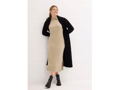 B.P.C beżowa sukienka dzianinowa długa z kołnierzykiem ^40/42