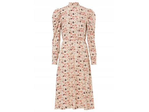 B.P.C Beżowa sukienka midi w kwiaty ^44