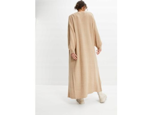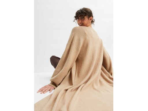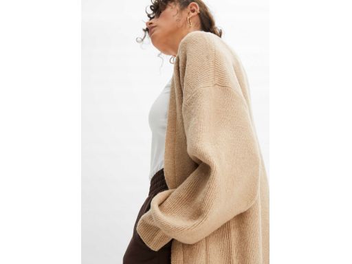 B.P.C beżowy długi sweter płaszcz dzianinowy kardigan bez zapięcia ^32