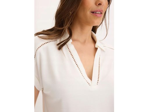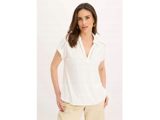 B.P.C biała bluzka z ażurową dekoracją z kołnierzykiem ^52/54