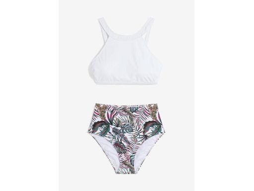 B.P.C bikini biały biustonosz bustier i figi maxi we wzór roślinny ^50