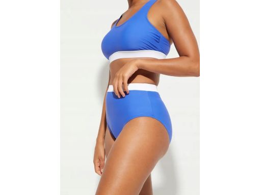 B.P.C bikini bustier niebieskie z białym wykończeniem figi wysoki stan ^40