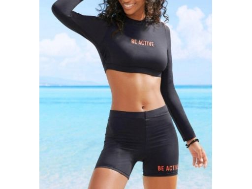B.P.C bikini czarne szybkoschnące długi rękaw i krótki legginsy szorty r.44