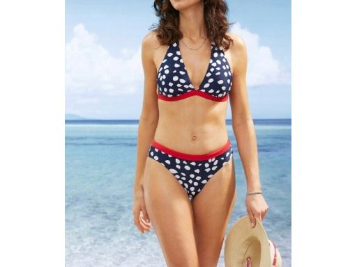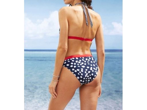 - jedna strona granatowa z białymi kółkami, druga strona granatowo biała w paski