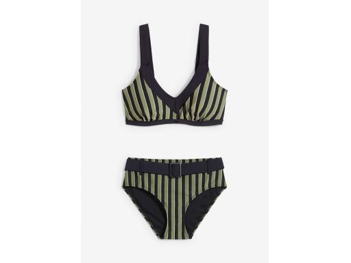 B.P.C bikini oliwkowo-czarno-złote w paski z figami z paskiem ^38