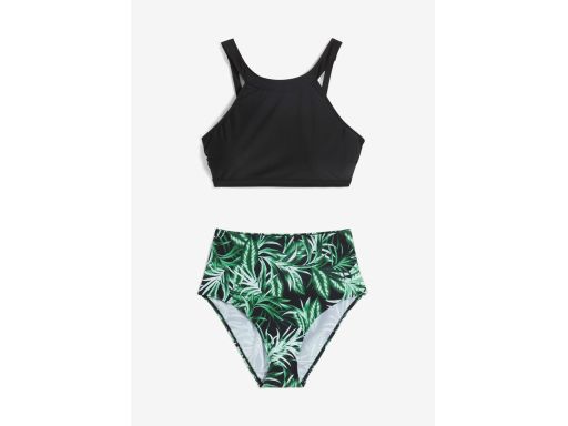 B.P.C bikini top czarny i figi z wysokim stanem we wzory ^38