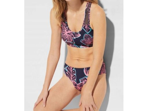 B.P.C bikini z biustonoszem bustier + figi granatowe w neonowe wzory 40.