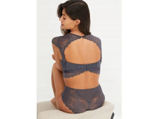 B.P.C biustonosz braletka-top koronkowy szary bez usztywnień 44/46.