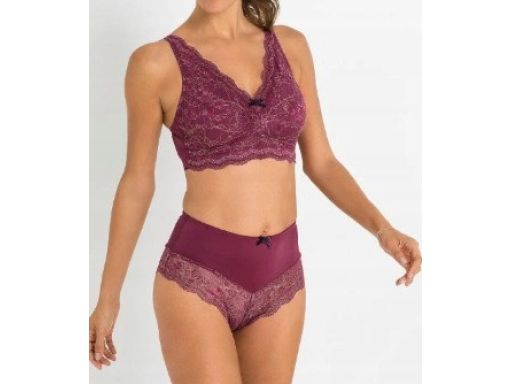 B.P.C biustonosz miękki koronkowy bordowy ze złotą nitką 105D