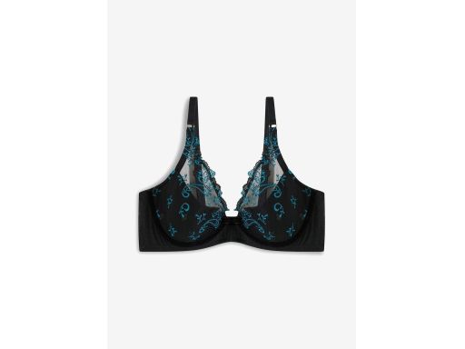 B.P.C biustonosz półusztywniany na fiszbinie czarny turkusowym haftem ^80B