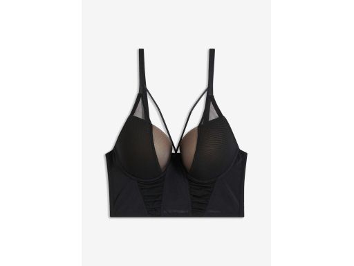 B.P.C biustonosz przedłużony-top z fiszbinami czarny z paskami 90C.