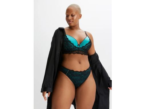 B.P.C biustonosz usztywniany turkusowy z czarną koronką i kamieniami ^