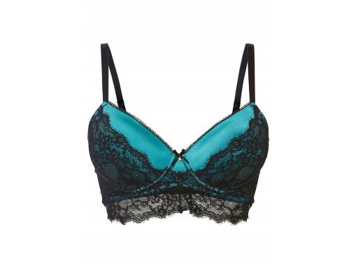 B.P.C biustonosz usztywniany turkusowy z czarną koronką i kamieniami ^