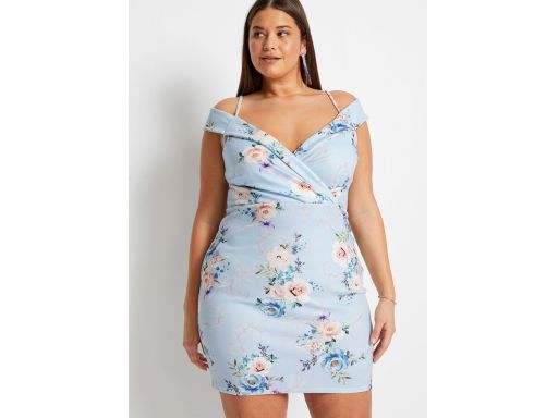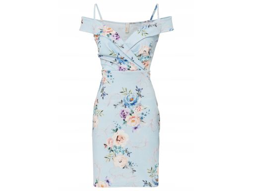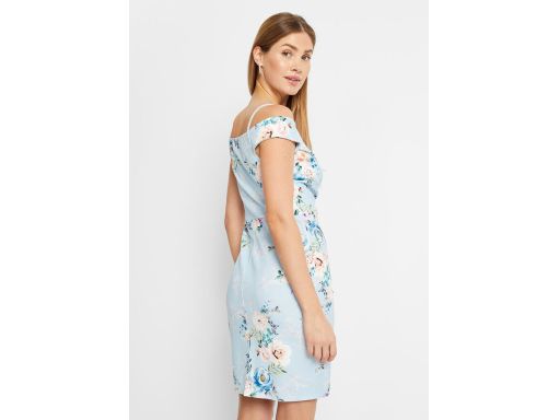 B.P.C błękitna sukienka w kwiaty z odkrytymi ramionami 40/42.