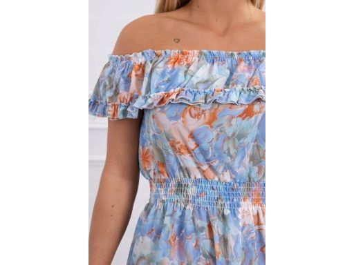 - błękitna w kolorowe kwiaty