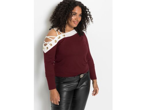 B.P.C bluzka asymetryczna bordowo-biała ze sznurowaniem 40/42.