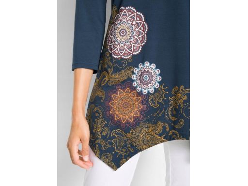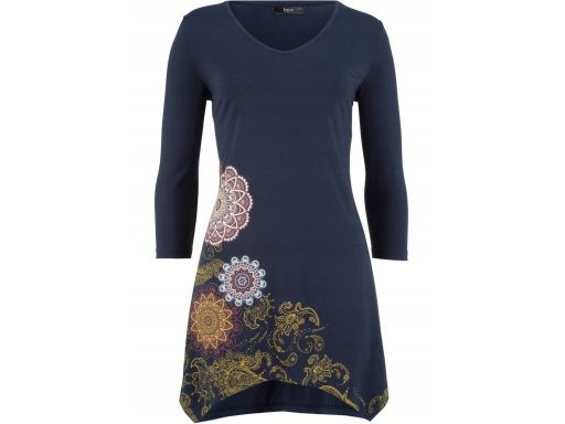 B.P.C bluzka asymetryczna granatowa z kolorowym nadrukiem 56/58.
