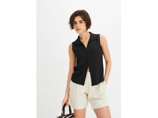 B.P.C bluzka bez rękawów z kołnierzykiem z krepy 40/42.