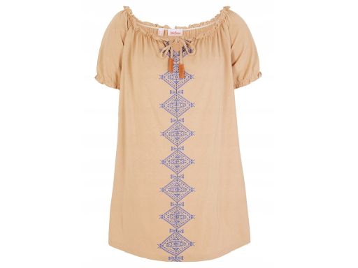 B.P.C bluzka beżowa carmen z nadrukiem 48/50.
