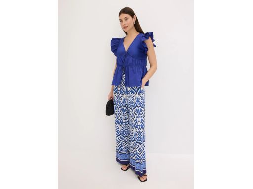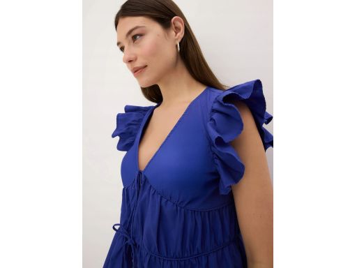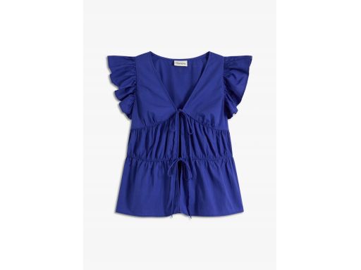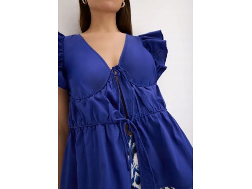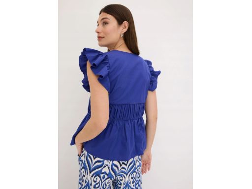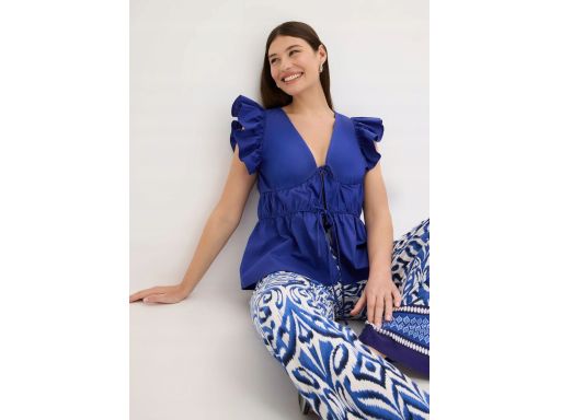 B.P.C bluzka chabrowa bawełniana wiązana z marszczeniami i falbankami