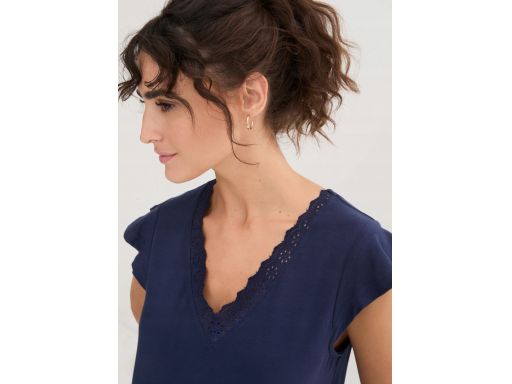- Dekolt V zdobiony koronką
