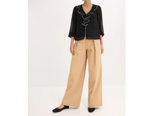 - Z falbankami przy dekolcie wykończonymi białą lamówką