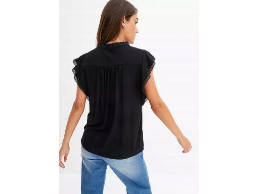 B.P.C bluzka czarna z koronką i falbankami r.36/38