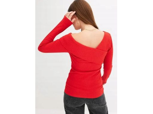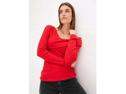 B.P.C bluzka czerwona prążkowana z modnym dekoltem r.48/50