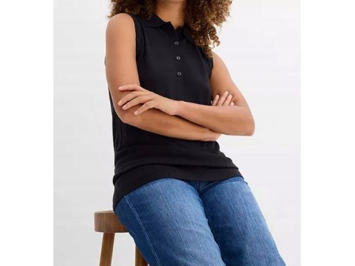 B.P.C bluzka dzianinowa polo czarna bez rękawów 40/42.