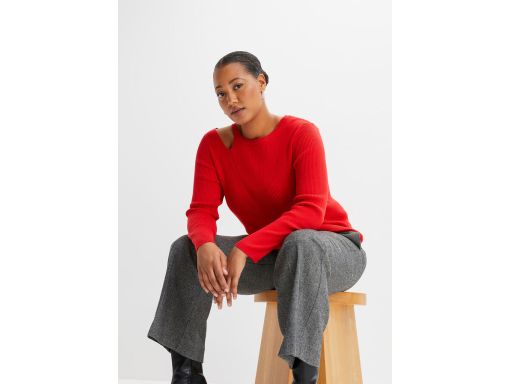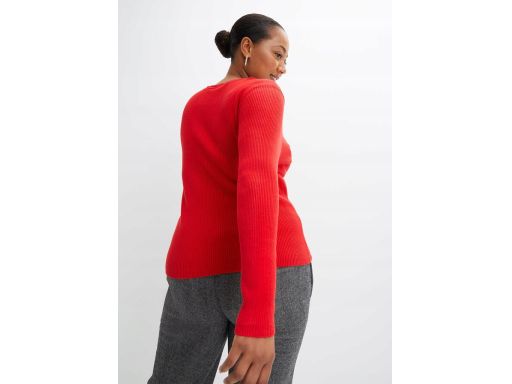 B.P.C bluzka dzianinowa z wycięciem czerwona prążkowana ^52/54