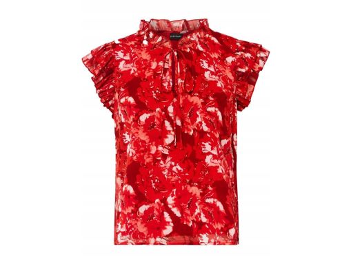 B.P.C bluzka koszulowa szyfonowa w kwiatki czerwona z wiązaniem r.54