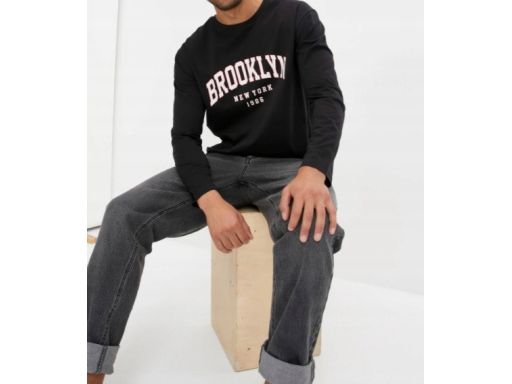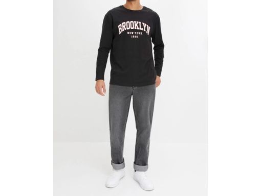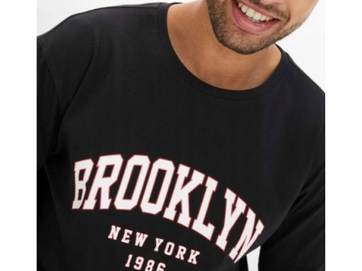 B.P.C bluzka męska czarna długi rękaw z nadrukiem L.