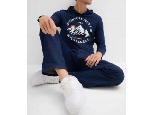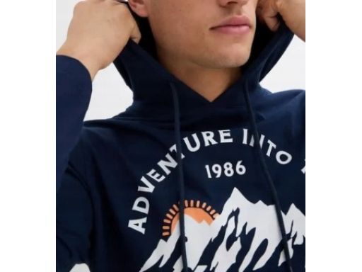B.P.C bluzka męska granatowa z nadrukiem i kapturem 3XL.