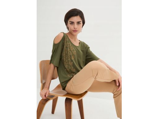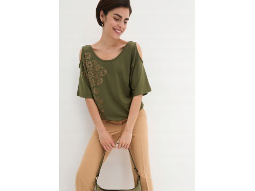 B.P.C bluzka odkryte ramiona zielona z dżetami ^40/42