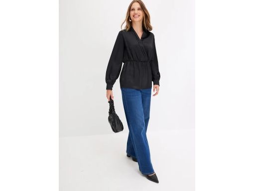 B.P.C bluzka satynowa tunika czarna odcinana w pasie 48.