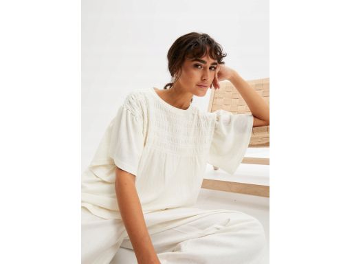 B.P.C bluzka śmietankowa krepowana typu "nietoperz" r.44/46