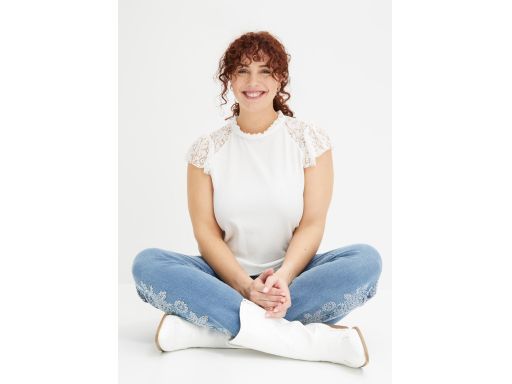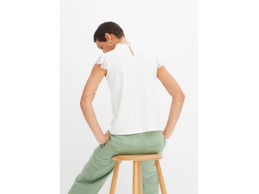 B.P.C bluzka biała z koronką lekko krepowana 52/54.