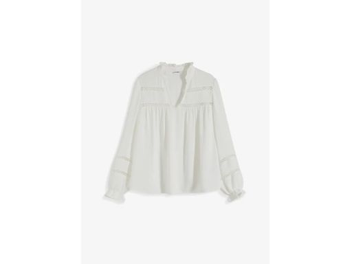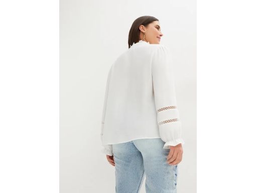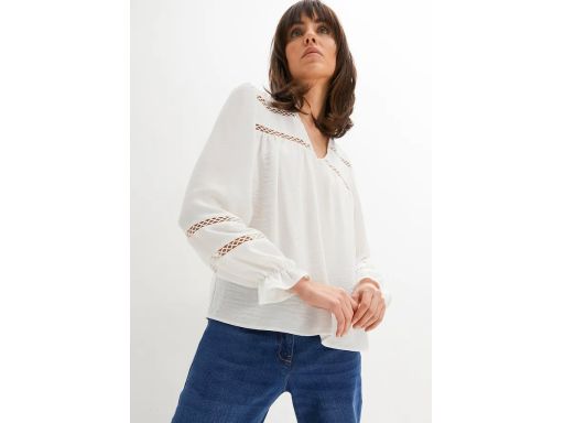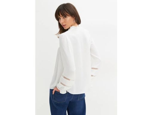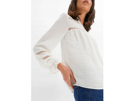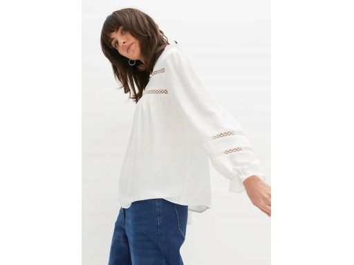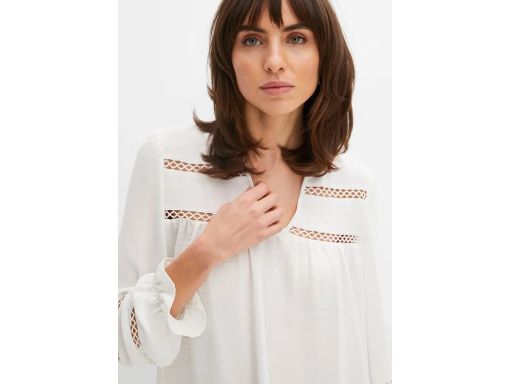 B.P.C bluzka tunikowa z ażurową koronką biel wełny r.40