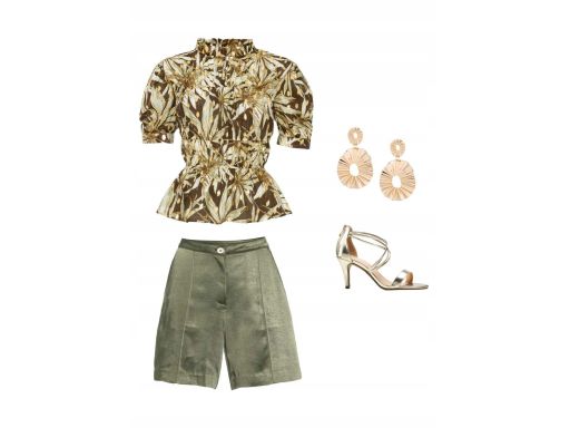 - kolor oliwkowy we wzory z metalicznym nadrukiem