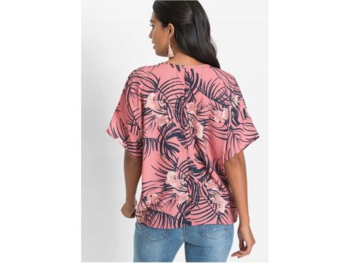 Długa bluzka z falbaną dymny róż 44/46.
