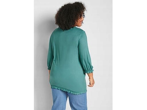 - Wykończenie bluzki gumką z delikatnymi falbankami