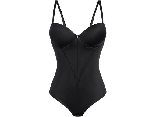 B.P.C. body na fiszbinach czarne z połyskującego materiału 80C.