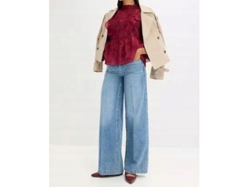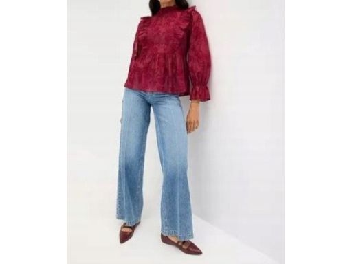 B.P.C bordowa bluzka z haftem, falbankami i baskinką 40.