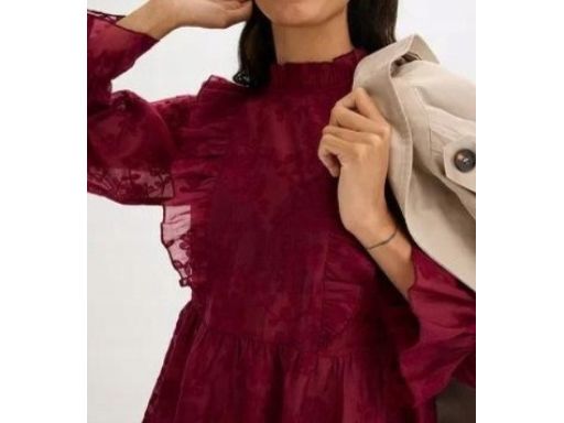 B.P.C bordowa bluzka z haftem, falbankami i baskinką r.42