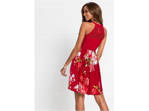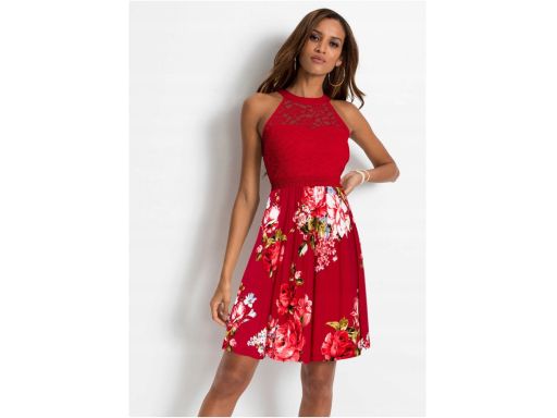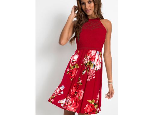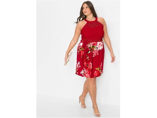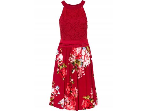 B.P.C bordowa sukienka w kwiaty z koronką 46.