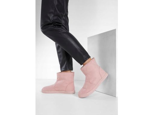 B.P.C botki damskie różowe eko zamsz z kożuszkiem r.36